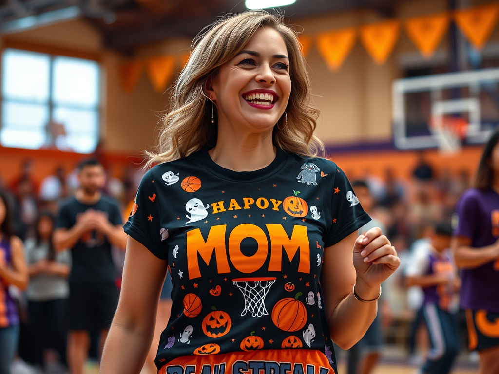 It’s more than just a seasonal fashion statement it’s a celebration of who you are: a strong, funny, loving mom who knows how to dribble through life like a pro and laugh while doing it. 👟🎃