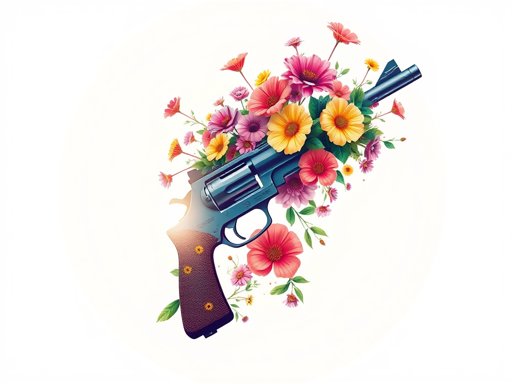A weapon represents conflict, power struggles, and fear. Flowers represent beauty, growth, renewal, and peace. When these two elements merge into a single image, the result is a powerful visual metaphor.
